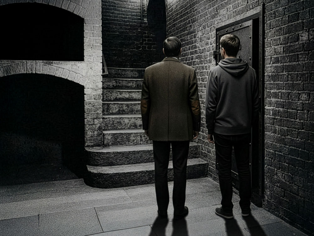 The door was rusted shut. Or rather, permanently ajar, neither locked nor open, but you could peer through a gap with a torch into the darkness and light up a facing brick wall, whitewashed with mould. I had no idea what was in there as no one had ever been in there, according to George Sassoon.